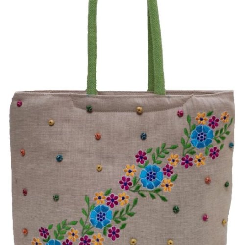 Multicolored Hand Embroidery Jute Hand Bag